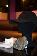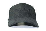 Black faux suede baseball cap with high quality 3D embroidered 'awoken' logo across the centre front.