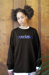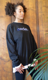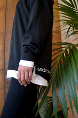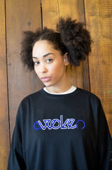 Oversized fit in a drop shoulder style, side vents and 'awoken 'print along shaped hem.
