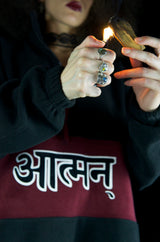Sanskrit text ‘Soul’ to the maroon panel, hand sewn and printed by the team at Awoken for the GOD / GODDESS touch.